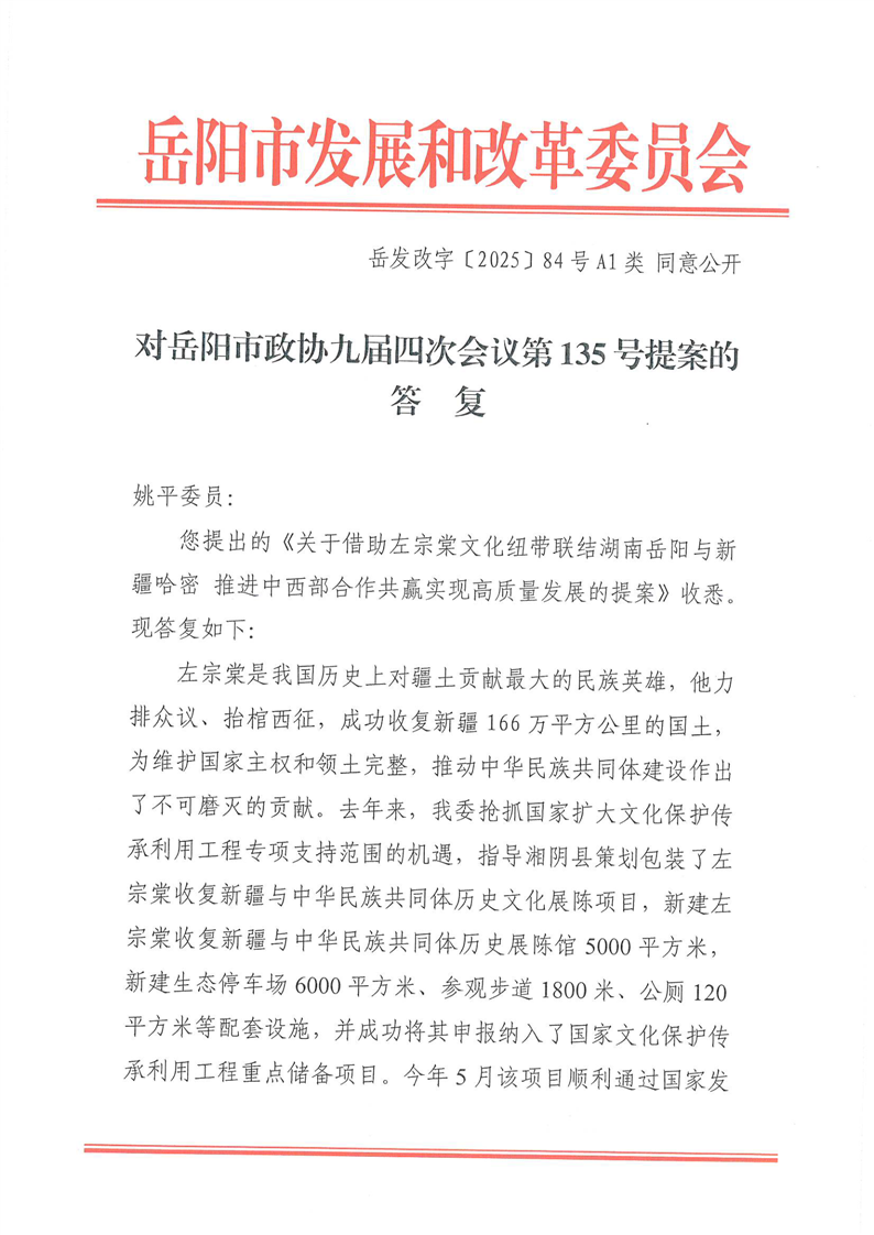 对市政协九届四次会议第135号提案的答复