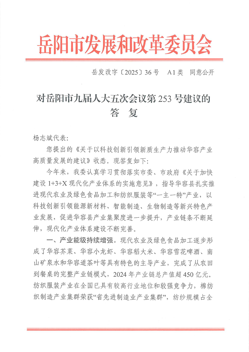 对岳阳市九届人大五次会议第253号建议的答复