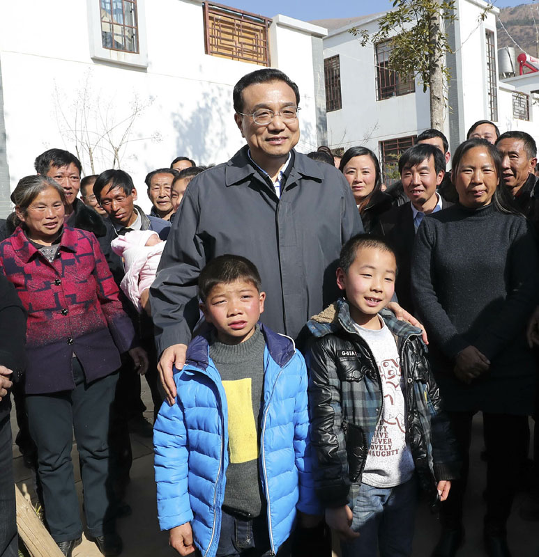 李克强总理站在中间,双手搂着两位小朋友,仨人站在震后重建的鲁甸甘家寨安置点留下一张合影。1月23日下午,随着摄影师按下快门,鲁甸的历史和现实交汇一起。