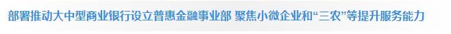 国务院总理李克强5月3日主持召开国务院常务会议,会议明确,大型商业银行2017年内要完成普惠金融事业部设立,严格落实小微企业贷款增速不低于各项贷款平均增速、户数和申贷获得率不低于上年同期水平的要求。国务院相关部门要完善税收优惠、风险补偿、差异化监管等措施,并与促进“双创”等政策相衔接,发挥财政担保体系对发展普惠金融的支持作用,合理提高小微企业、“三农”、扶贫等业务不良贷款容忍度。