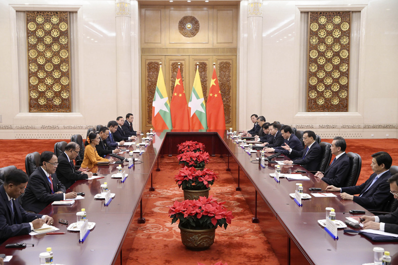 昂山素季表示,缅中友好源远流长。缅方高度重视发展对华关系,视中国为好朋友,对两国合作前景充满期待,愿进一步加强经贸合作和人文交流。缅方感谢中方支持和帮助缅推进国内和平进程,欢迎中方继续为此做出努力。