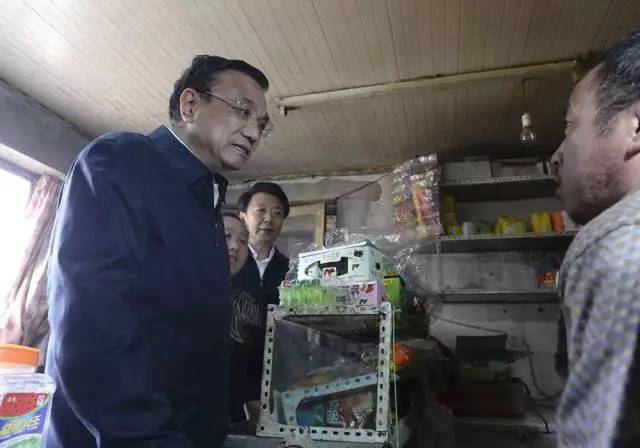 2014年3月27日,李克强在赤峰铁南棚户区看望残疾商户。