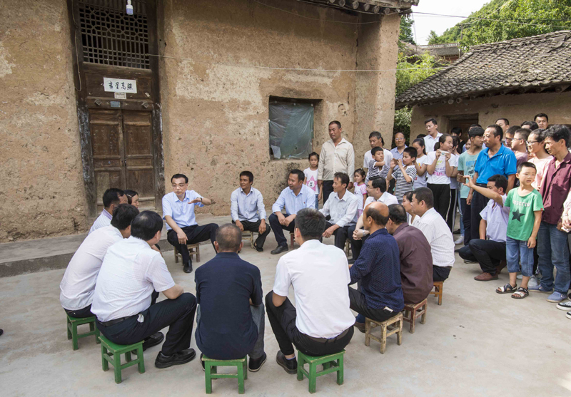 李克强10日下午深入陕西宝鸡市西部山区大湾河村,与即将搬迁的贫困户座谈,详细了解当地易地搬迁方案和补贴政策。