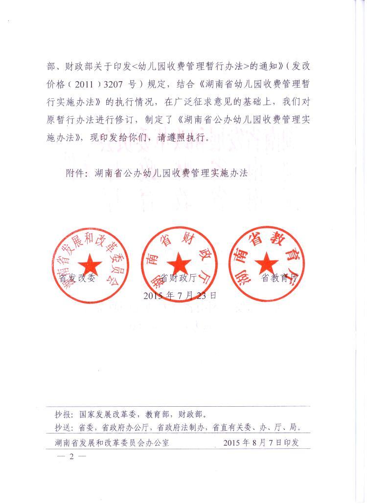 关于印发《湖南省公办幼儿园收费管理实施办法》的通知-附件.doc