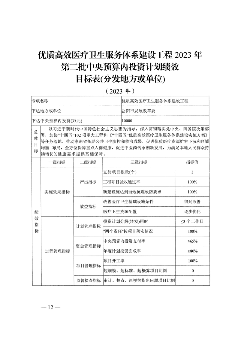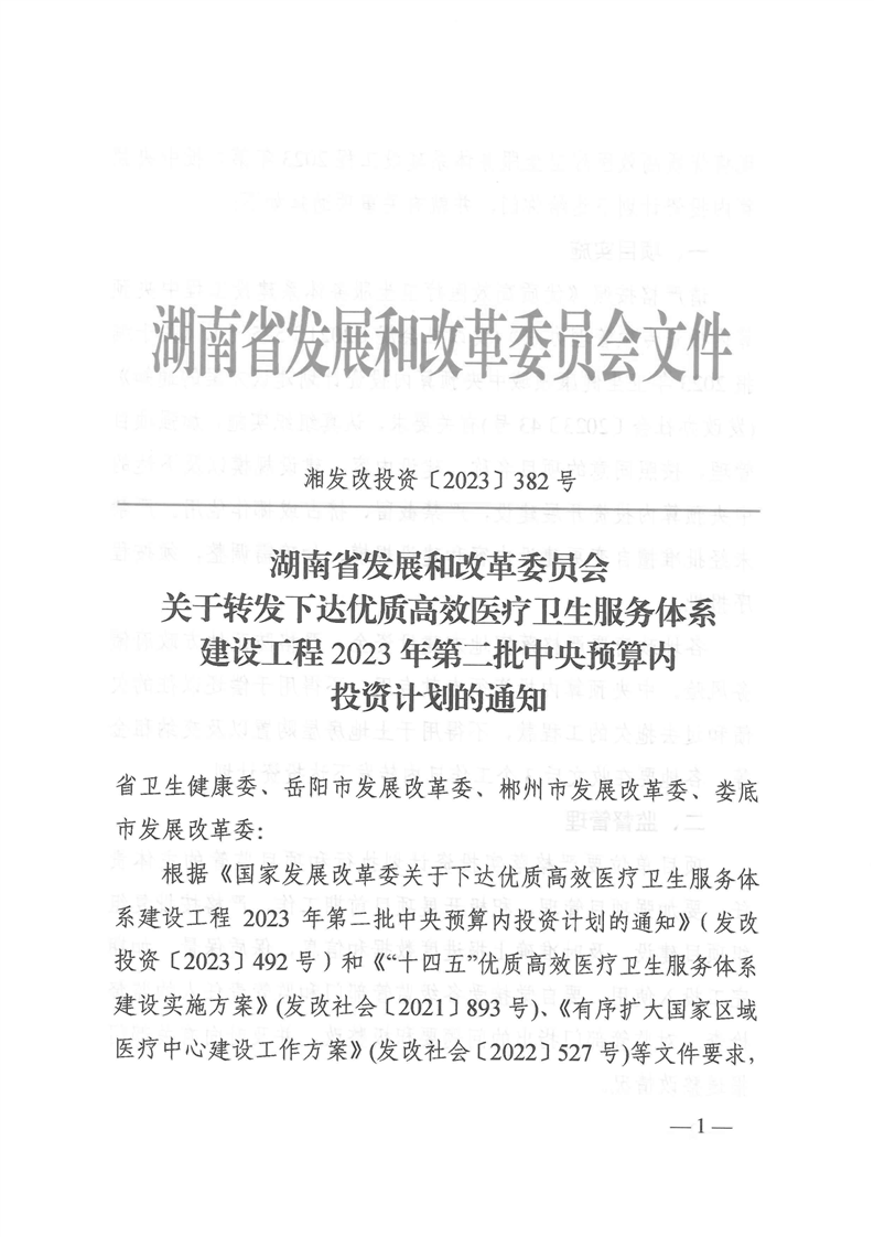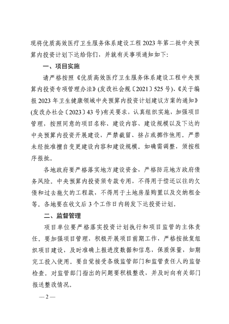 关于转发下达优质高效医疗卫生服务体系建设工程2023年第二批中央预算内投资计划的通知