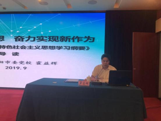 市委党校副校长霍益辉作“深学笃行新思想,奋力实现新作为”——学习习近平新时代中国特色社会主义思想纲要专题辅导。霍教授从习近平新时代中国特色社会主义思想的理论渊源,习近平新时代中国特色社会主义思想的核心要义,习近平新时代中国特色社会主义思想的实践要求三个方面全面、系统的阐述了习近平新时代中国特色社会主义思想是对马克思列宁主义、毛泽东思想、邓小平理论、“三个代表”重要思想、科学发展观的继承和发展,是马克思主义中国化最新成果,是党和人民实践经验和集体智慧的结晶,是中国特色社会主义理论体系的重要组成部分,是全党全国人民为实现中华民族伟大复兴而奋斗的行动指南,必须长期坚持并不断发展。