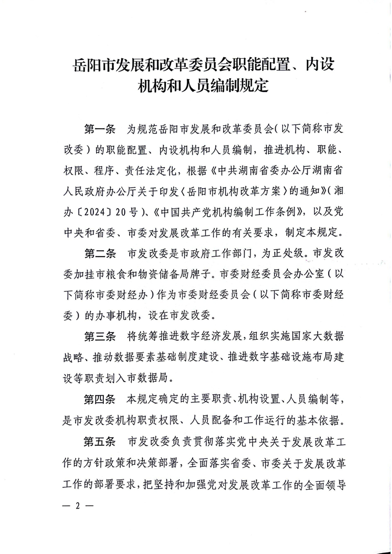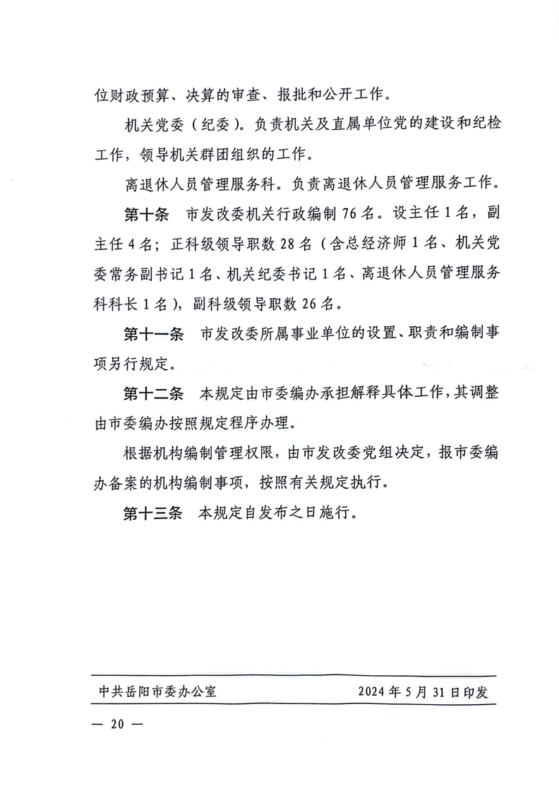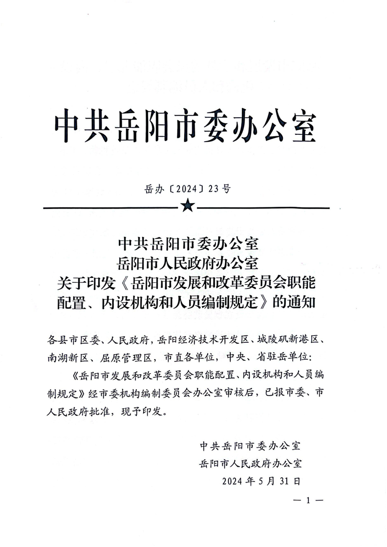 岳阳市发展和改革委员会职能配置、内设机构和人员编制规定