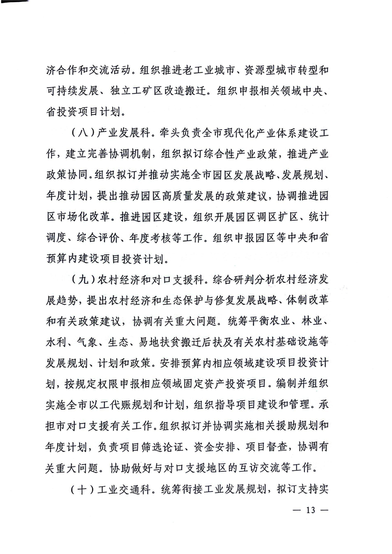 分管体制改革科(民营经济发展科)、产业发展科、区域协调发展科、工交科、低空经济科、能源科。