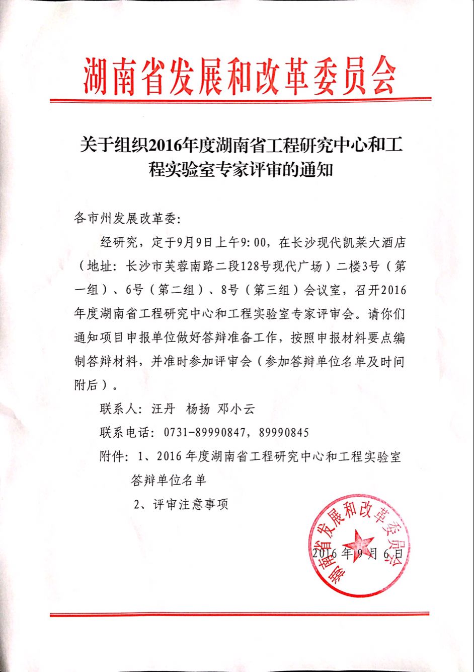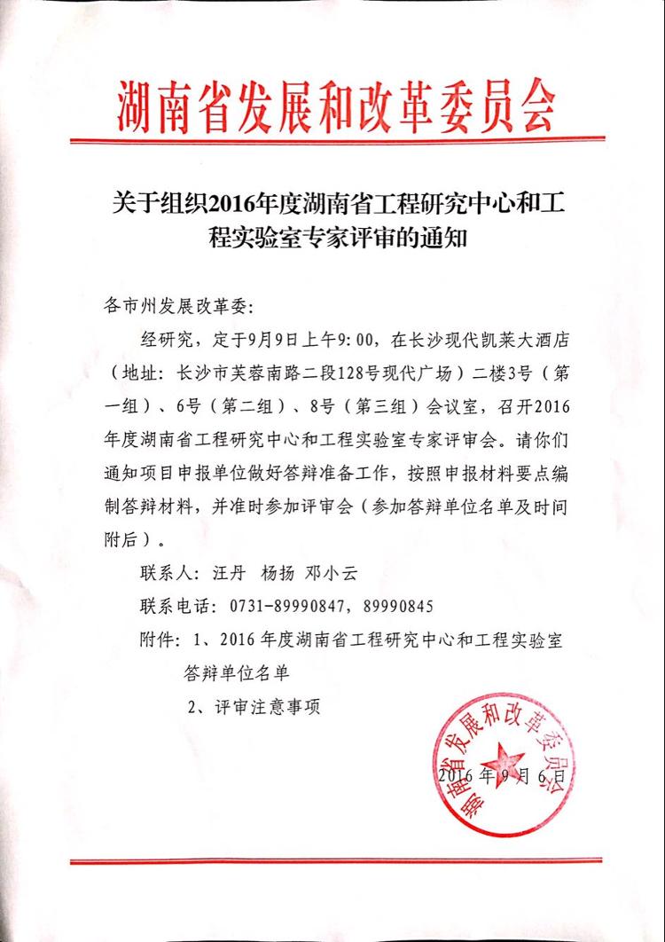关于组织2016年度湖南省工程研究中心和工程实验室专家评审的通知