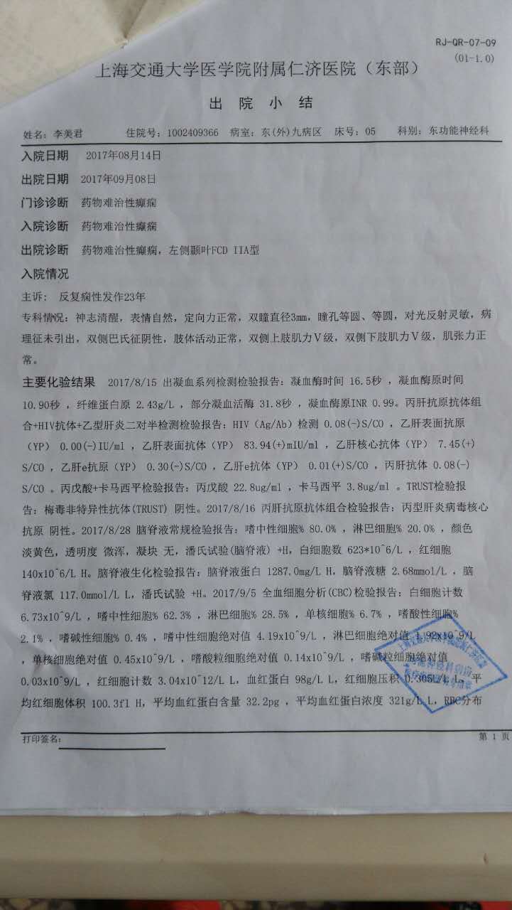 我姐姐身患药物难治疗性癫痫病和精神类疾病20多年,近年来身体情况每况日下,几乎生活不能自理。她的家庭在当地被评为贫困户,本身是个精神残疾人,有残疾人证明。今年在亲友的帮助下,筹钱去上海仁济医院(三甲医院)功能神经科做了开颅手术,术后恢复情况还不是很明了。