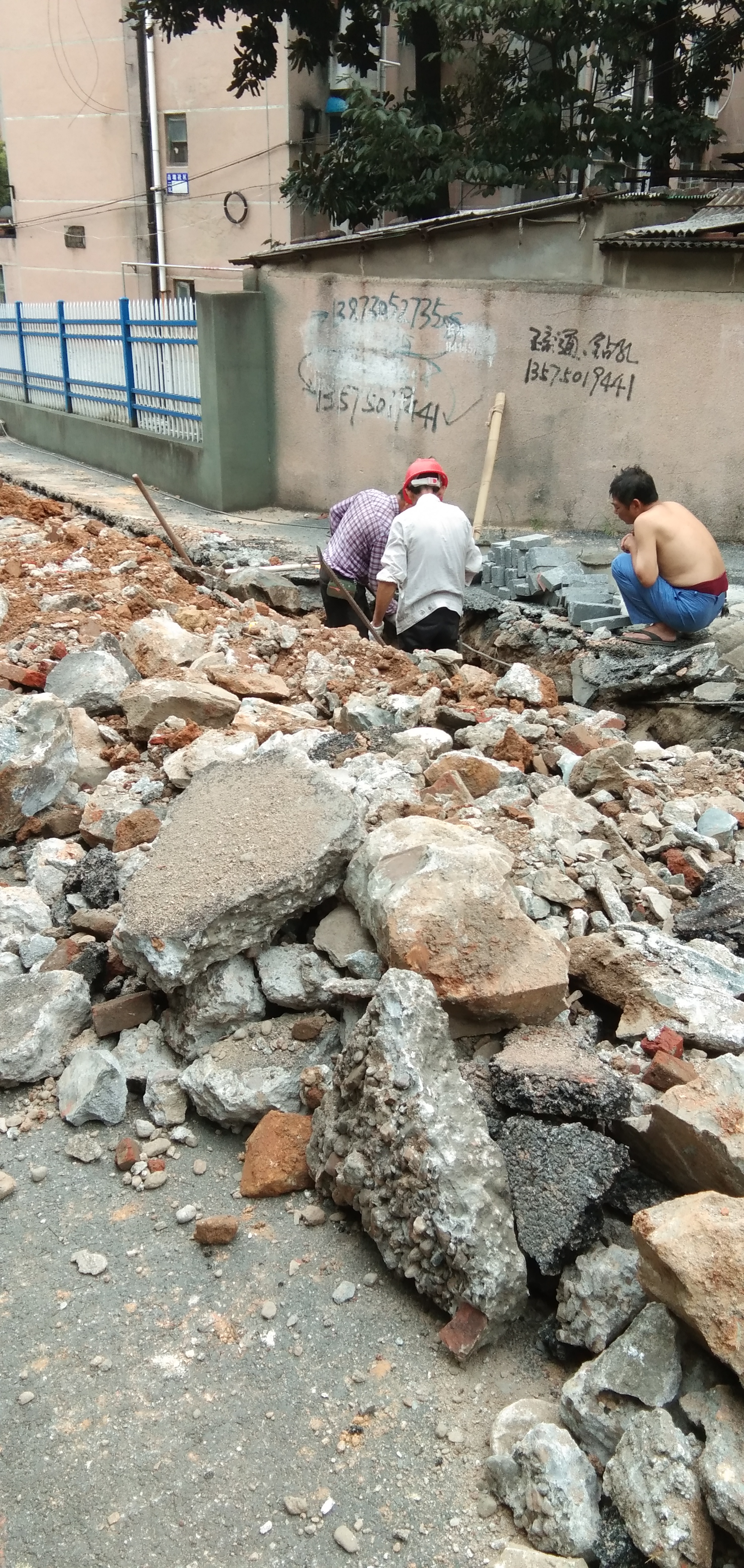 云溪区岳化家属区水管改造,本该是造福于民的工程,现在却被霸道施工搞成了扰民工程,连续几天在家属区内机械作业,将本就不宽的道路占去一大半,这里住着倒班工人,还有很多老人和小孩,他们这样施工,已经严重影响了居民的生活。将进出的道路挖断,又不设立通行通道,如果有老人和小孩摔伤,我们找谁负责?这样野蛮霸道的施工,现在连个负责人都没有,灰尘满天飞。希望有关部门能出面为我们生活在这里的居民解决此事。