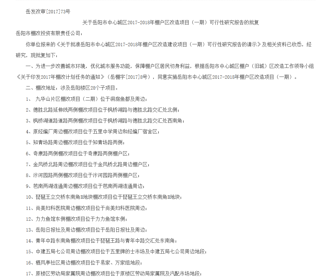 2、2018-2020年棚改规划中,岳阳楼区三年棚改共计26133户,其中,2018年计划7800户,2019年计划8192户,2020年计划10141户。但实际计划会有较大调整,2018年计划6013户,2019年暂定计划6195户,2020年计划还未定。
