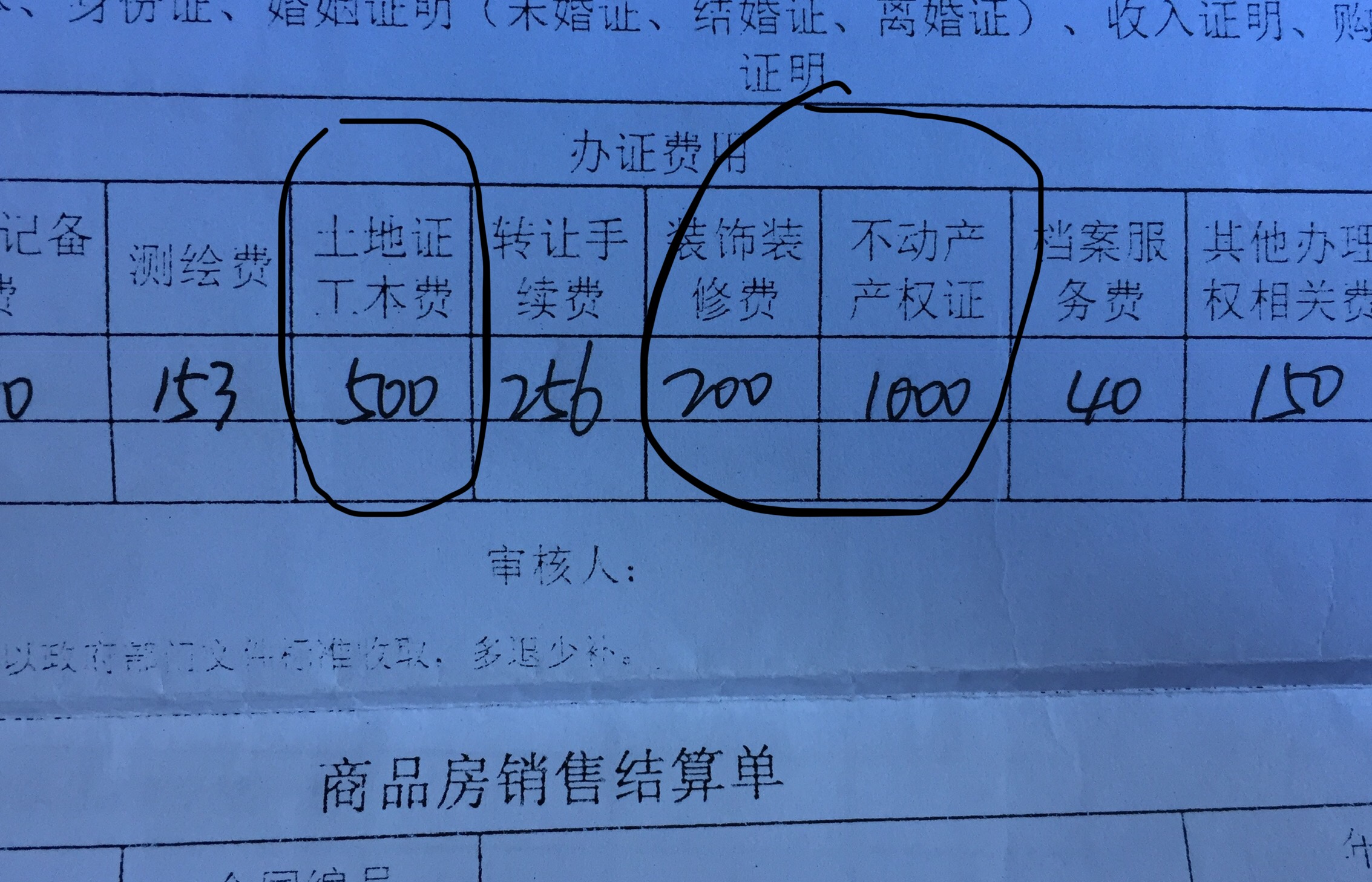 2.不动产产权证:1000元;