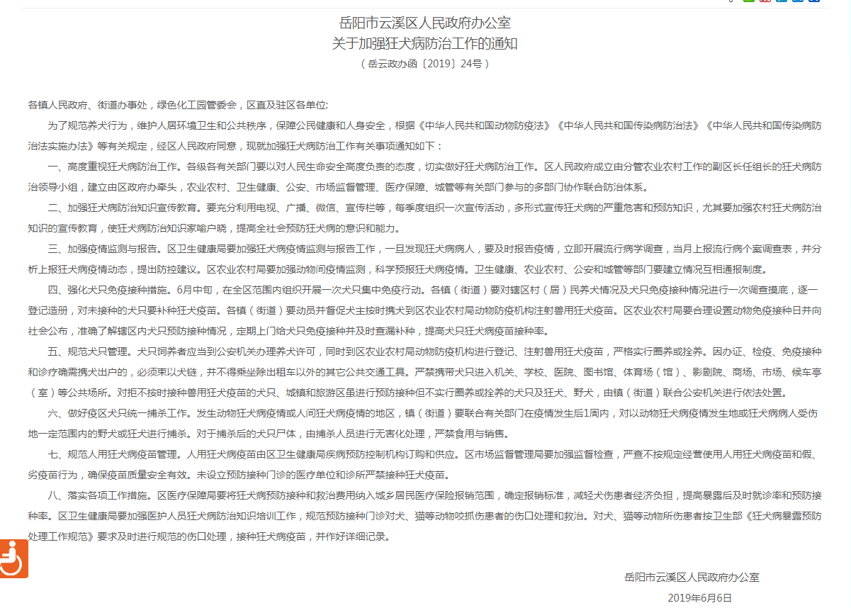 您好!您关于“岳阳市犬类动物管理办法”建议信我局已收悉,现经相关科室核实处理后,回复如下: