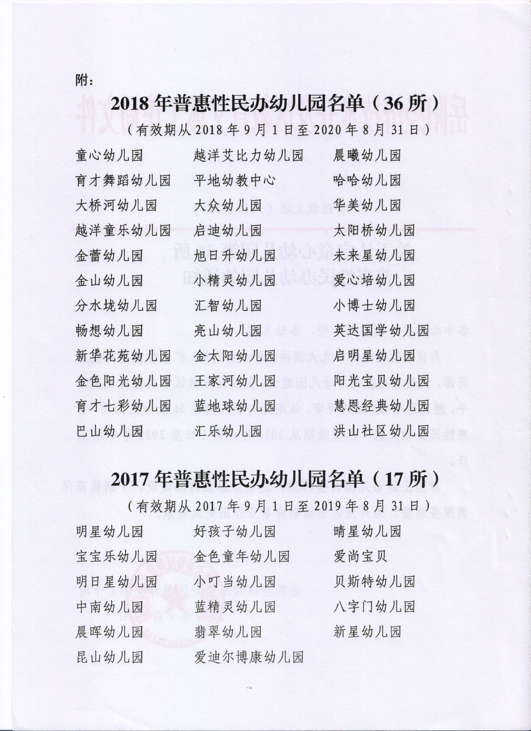 信件已收悉,经开区教文局幼教办查阅了有关资料,找到了2018年普惠性民办幼儿园名单,名单如下图: