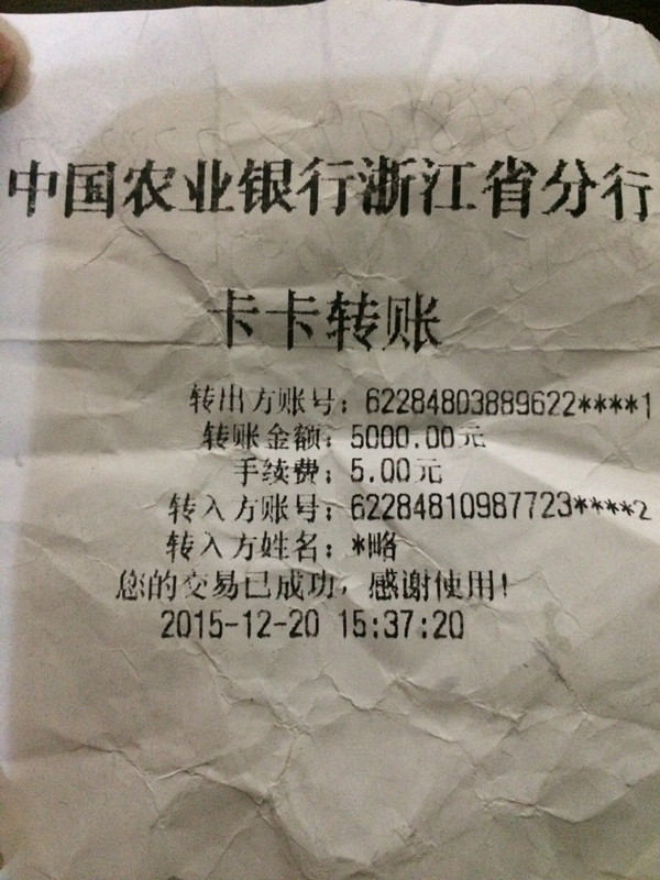 初次见面,我是浙江省缙云县人朱秀玲,联系电话18358955513,现居住浙江省金华市永康市古山镇四村工业区下谢山39号,在永康打工。2015年12月20日15点37分,我在永康古山的“中国农业银行”打款,本想将5000块钱汇给一个朋友,因银行的ATM机功能有误,误将5000块钱打到了另一个账号(62284810987723****2,中国农业银行,方略)(我自己账号:62284803889622****1,中国农业银行,朱秀玲),经与农业银行协商,银行只肯给个电话,而方略联系电话是空号。经过我自己多方联系,最终了解到误打款对方名叫“方略”,身份证号码是43062619****94215,家庭地址是湖南省平江县木金乡保全村7号,现无法联系到方略本人,所以请市长大人帮帮忙,联系到方略本人或者家里人,要回我自己两个月的血汗钱。