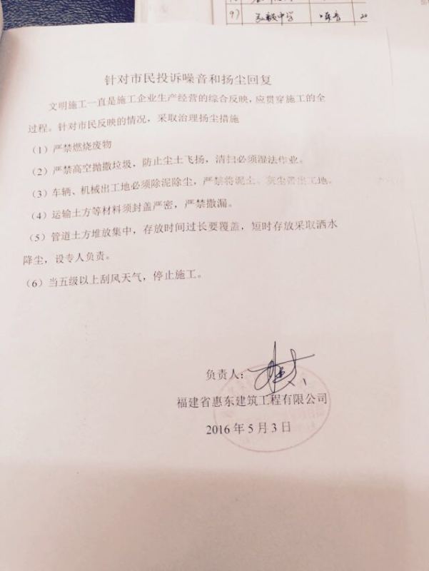 我局将您来信中反映的问题,按照工作责任划分,分派至市建设工程质量安全监督处和市建设工程监察支队。上述两单位进行了调查处理,对于原井水小厨装修噪声问题,市建设工程监察支队到现场进行了处置,该店面装修负责人已承诺进行整改。对名门世家项目扬尘扰民问题,市建设工程质量安全监督处对施工单位进行了约谈,要求整改,施工单位已出具整改方案(详见附件)。欢迎您配合我局对上述有关单位进行后续监督,若有再次扰民现象,您可直接拨打07308222580,向我局办公室反映。我们也将督促有关单位认真落实到位。