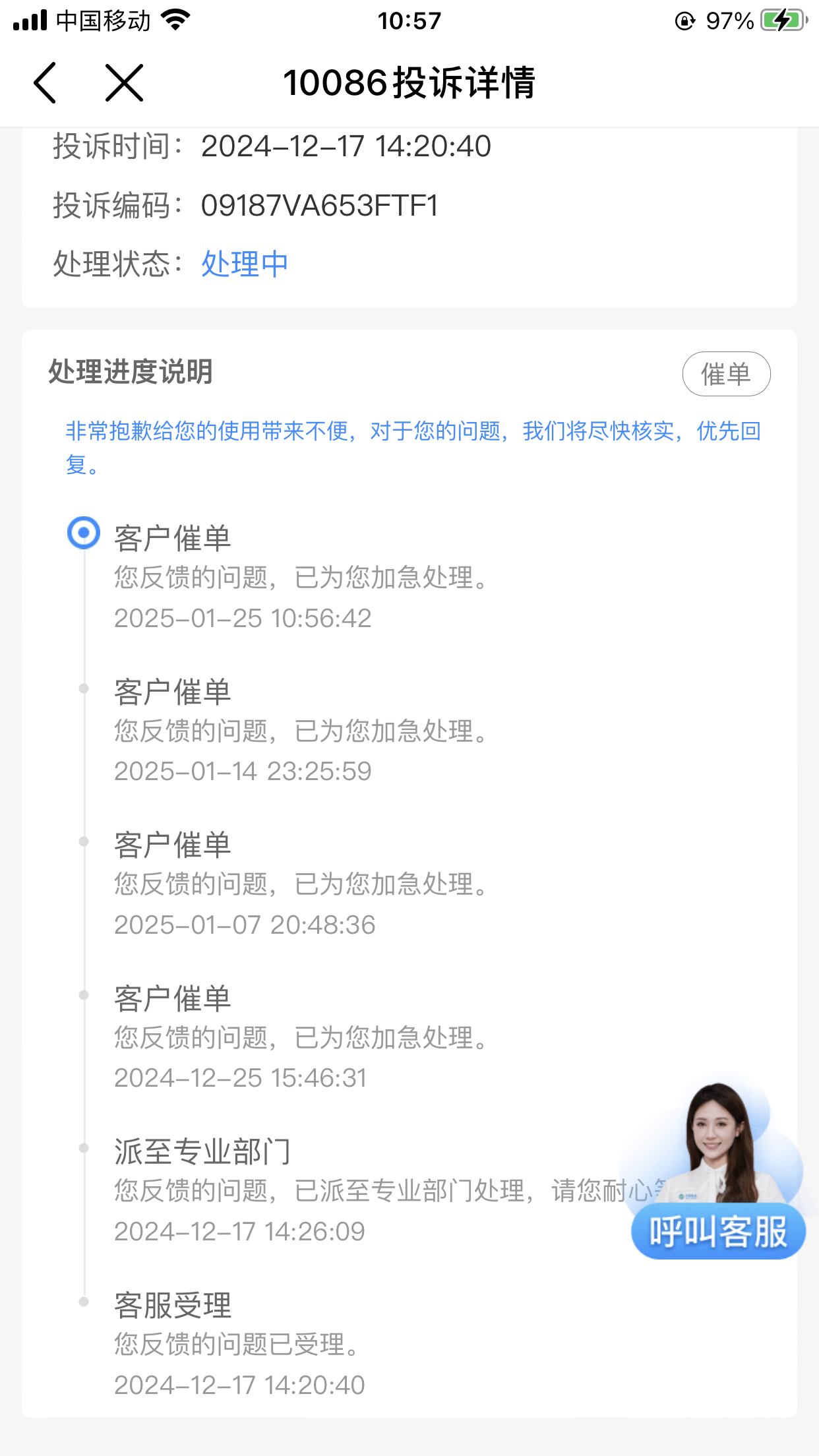 内容: 中国移动诈骗,乱收费,多次打10086没有人处理,反正就是要我等回复三个月了没有回复。也多次催处理、反正就是已帮你催处理。